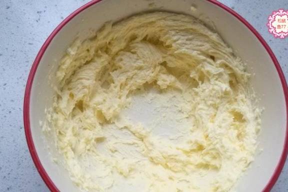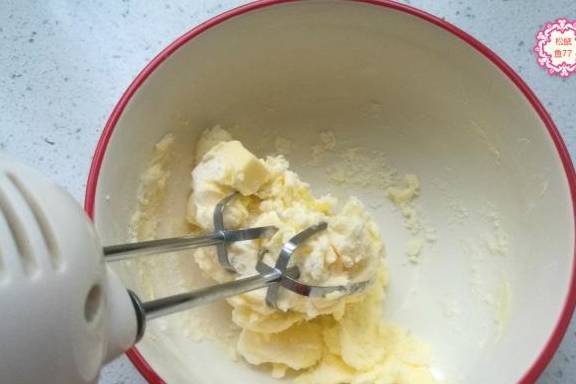 3、搅拌均匀后,就可以打开电动打蛋器了,先低速再高速打发黄油,打发到黄油蓬松发白就可以了。