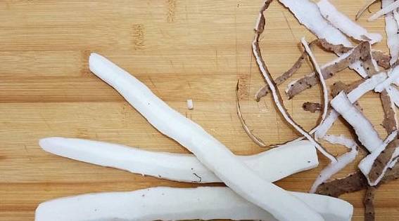 山药的形状像棍子,表皮淡黄色,肉质洁白,它的品种比较多,有的软糯香甜,有比较清脆爽口。山药的做法也是多种多样,可以煮汤、蒸、炒、炖、油炸、烤,用它来做成糕饼馅料,口味大不相同,十分美味。我们平常做得最多的就是煮汤或者炒菜,清淡爽口,不油腻。