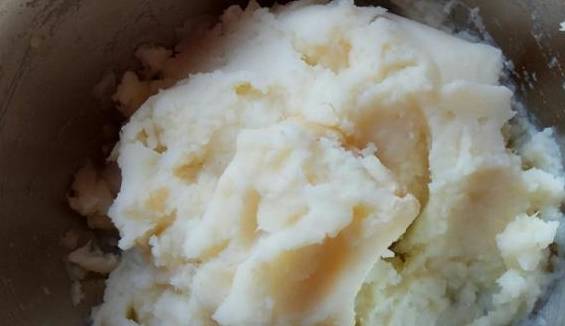 2、山药蒸熟后,盛出在碗中捣成糊状,加入适量的牛奶增加奶香味。