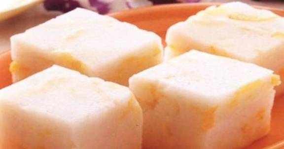5、蒸熟后拿出放凉,再切成块状,鲜香软糯的山药糕就做好了,洁白细腻,软糯清淡,带有香甜的奶香味,非常适合老人小孩吃。