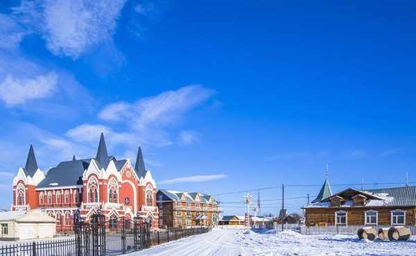 小镇的街道非常笔直,道路两旁的建筑充满了欧式风情,尤其是在白雪的笼罩下,让生活仿佛诞生在异国他乡。