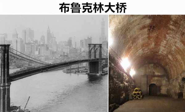 布鲁克林大桥是国外纽约著名的地标性建筑,建成于1883年,历史非常的悠久,该大桥全长1834米,坐落于曼哈顿和布鲁克林两岸,因为建造这座桥花费了1500万美元的巨额预算,所以为了能够获得回报,设计师脑洞大开的想到了,用大桥下面设计储藏室,用它来租给当地企业的酒窖储存酒瓶。