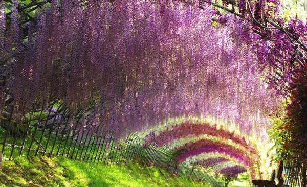 福冈河内藤园是观赏紫藤的另一个好地方。河内藤园的特色是紫藤隧道在3月初盛开。这是拍照的最好地方。