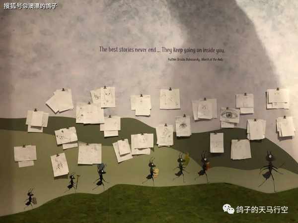 我走到走廊尽头,穿过滑门,里面摆放了很多小孩子的画,很有童真,看起来就让人开心。感觉这一个馆是专门为小孩设置的,探索小天地。我受好奇心驱使,四处转了转,看到又有一个门卫,便问他我要去的那个馆怎么走。他跟我讲了讲,我似懂非懂地离开了,又去了另外一个滑门。
