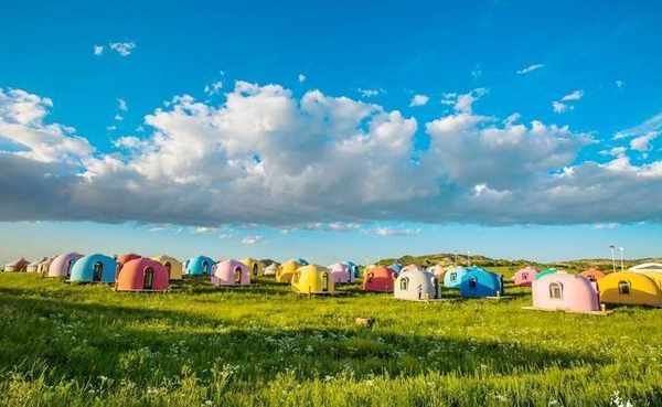 露营区提供各种偏远地区的选择。对于年幼的孩子或有孩子的家庭,首选颜色鲜艳的圆形蒙古包。如果想体验真正的蒙古包,传统风格的最合适,也有三角形和方形的。