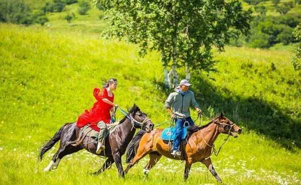 懂得骑马、勇敢的人,早已踏上马背,感受骑马的乐趣。即使你不会骑马,胆小,现在也可以学,或者让当地人牵着马前行。逐渐体验游牧骑马的乐趣。