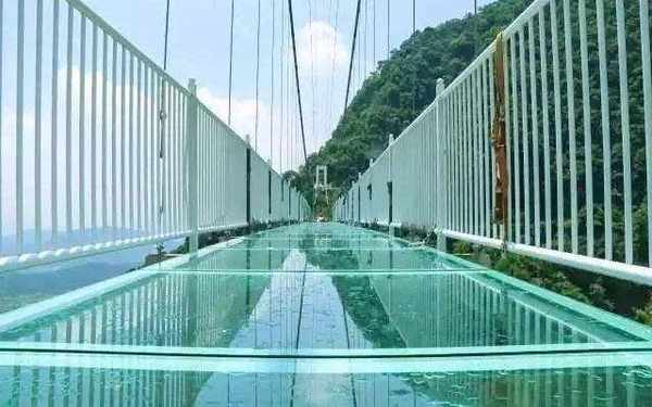 跑马岭虽然没有像其他景点一样安装缆车,但也算是与时俱进,安装了玻璃桥和玻璃滑梯。玻璃桥建在高处,下面的景色一览无余。