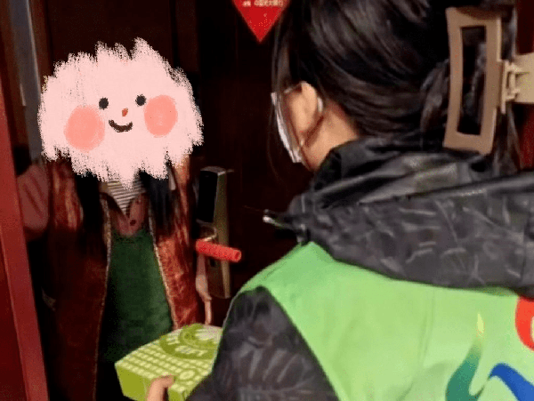 当然,社区里的独居老人也要感受到这股温暖的春风。制作活动结束后,“绿马甲”志愿者们马不停蹄,带着美味的小甜品前去探访小区里的独居老人,关心他们的独居生活,为他们送上一份承载着关怀与爱的甜蜜雪媚娘,进一步弘扬中华民族传统美德,倡导敬老爱老文明新风。