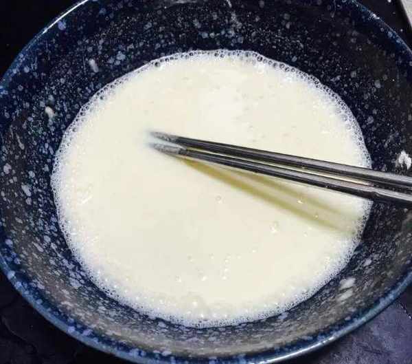 准备好小碗,用这只小碗舀出一个豌豆淀粉,倒在一个大碗里,然后用同样的小碗接一碗水,倒入豌豆淀粉,倒进去的时候不要太心急,一边倒一边搅拌为好,这样做能避免大疙瘩和倒腾后的问题,继续搅打至大碗内无干淀粉为止,而不结块就完了,即使结块,用勺按一下,然后混合均匀。
