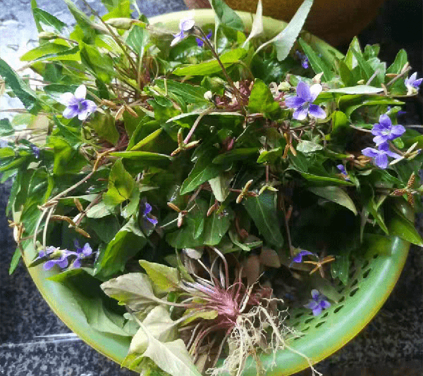 1.紫花地丁去掉根部或干枯叶,反复多冲洗几遍后,放到淡盐水中浸泡20分钟,目的是泡出农药残留和杀虫卵。