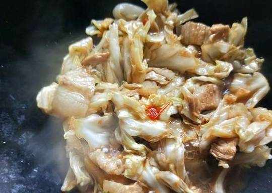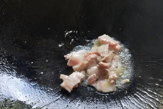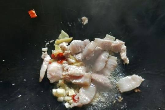 6.加入五花肉翻炒