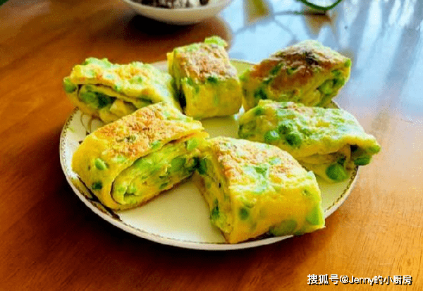 最后切成小块装盘,这道早餐就做好了。毛豆和鸡蛋都是高蛋白、高钙的食物,搭配在一起简直是绝配,多给老人孩子吃。