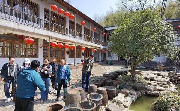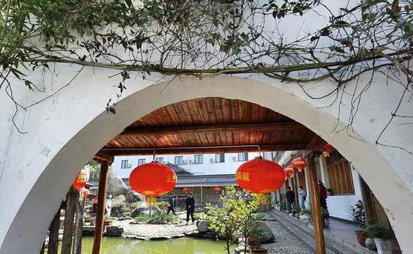当日,在安徽省六安市金安区张店镇一处农家小院绿竹苍翠,春花烂漫,每个屋檐都挂着喜庆的红灯笼,还有铺着石磙的小路,令人垂涎的腊肉,充满乡土气息,特色土菜更是让游人赞不绝口。