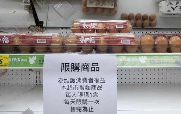 台湾的一些知名的大卖场、超市等,已经开始限制民众只能购买1盒鸡蛋。