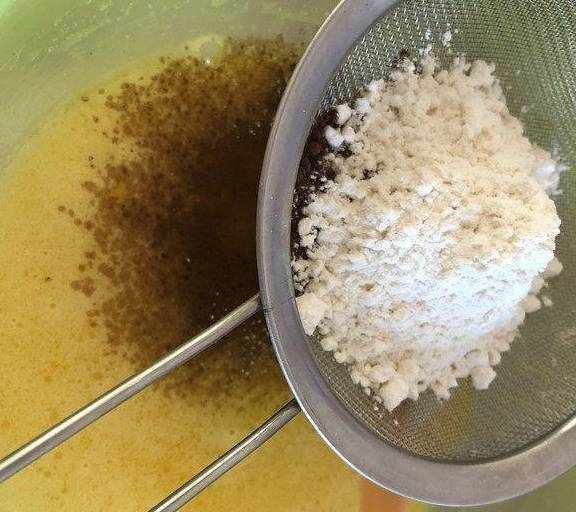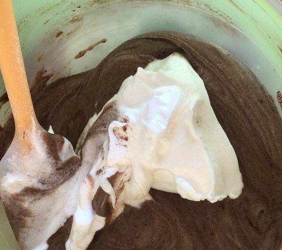 蛋白分三次加入面糊中,自下而上翻拌均匀。