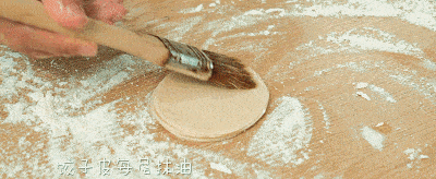 1、把饺子皮放在撒有面粉的桌子上,饺子皮每层抹油,一层一层对准中心叠起来(叠5、6张比较好擀)。