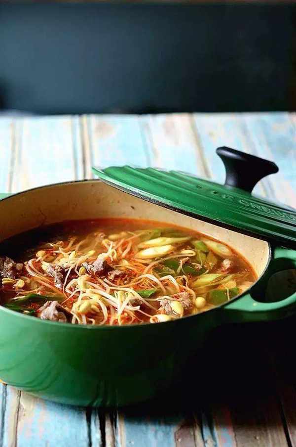 又热又辣的辣牛肉豆芽汤,荤素搭配,开胃爽口又不油腻,煮一锅全家人每人喝几碗。