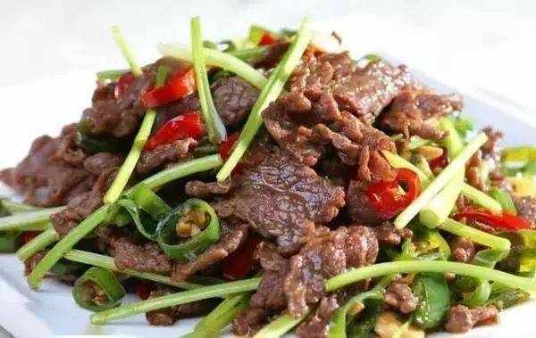 4。牛肉片炒至颜色,加入大蒜和胡椒粉。