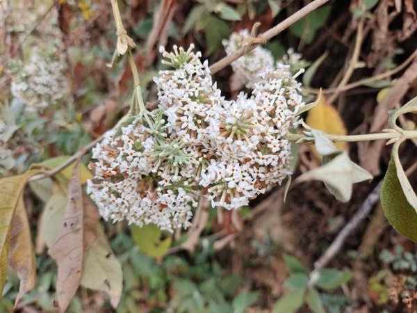 密蒙花远观还可以,味道却有点“上头”,无法细嗅,与十里飘香的春天格格不入。它花团锦簇,花瓣是最低调的白,不与百花争春,花蕊内暗藏一抹嫩黄,经水煮后能释放出天然可食用的黄色素,气味也转换成了幽香。因此,它还有着一个更为人们熟知的名字——染饭花。