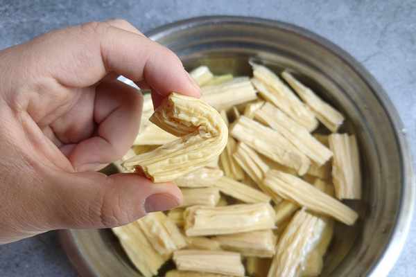 腐竹虽然好吃,但泡发却很让人头疼,用清水来泡,泡发时间很长,往往三四个小时过去了,腐竹的中间还有夹生的地方,做不到完全泡发;如果用热水来泡,虽然泡发时间会缩短一些,但泡发的并不均匀,一块硬一块软的,而且最外边的腐皮还容易泡烂,吃起来影响口感,那要如何正确的泡发腐竹呢?小面小小就分享下从厨师叔叔那里学来的方法,泡发腐竹时只要加2样东西,半小时就能泡开,省时又省力。