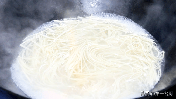 2.起锅烧水,加入一勺食盐,水开后放入豆腐皮,等水再次沸腾时倒出控水,用凉水多冲洗几遍,这样豆腐皮吃起来更筋道。