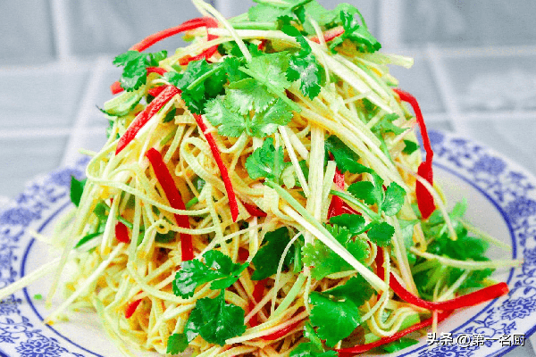 3.另起锅烧油,倒入花椒和红辣椒爆香,把热油浇在姜末里,激发出香味备用。准备一个拌菜盆,倒入食材,加入食盐2克,白糖2克,味精1克,倒入花椒,红辣椒和姜末,加入白醋5克,生抽3克,用筷子搅拌均匀,装入盘中就可以上桌食用了。