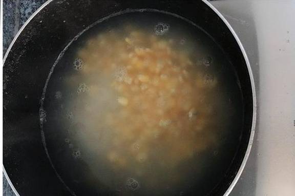 四、随后倒入准备的玉米粒,大火烧开,转小火慢熬20分钟;