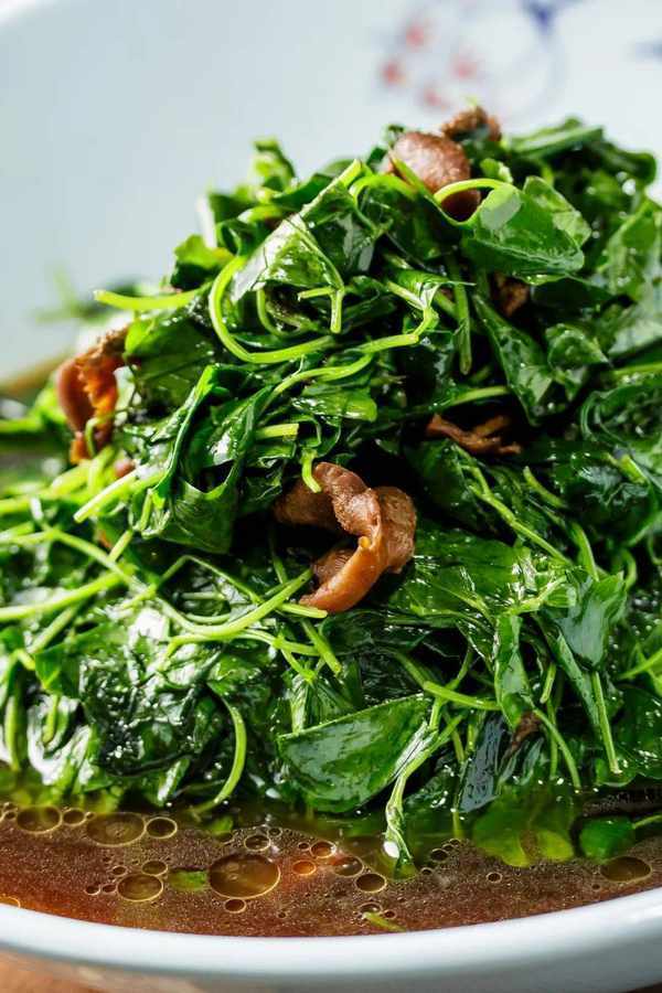 为了吃好这口鲜嫩,苏州人很有讲究。比如,翻炒会让叶子卷边,所以最好是生煸,不用颠锅。另外,由于质地易老而“刮油”,要用大量油来配才好吃,而且最好佐以少量黄酒或白酒,既去草青味,也更酥嫩。