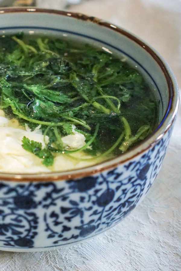 荠菜大概也是苏州人吃得最多的野菜。苏州的早点摊上,总有荠菜馄饨的一方天地。荠菜跟肉馅一搭就能碰撞出新的火花,肉馅不能太瘦,放一点就足以调动荠菜的鲜味,包裹进面皮,变身成为一个个荠菜大馄饨,咬下去的每一口都很满足。