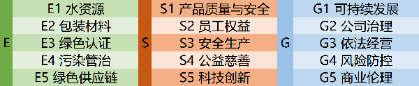 本测评从环境资源、社会责任和公司治理三大维度分别出发,通过考量白酒企业在在ESG管理及发展上的成果及不足,以5星级评价标准为企业赋予测评星级。为了更充分的评价企业表现,三大维度分别包含5个子指标,具体指标维度如下: