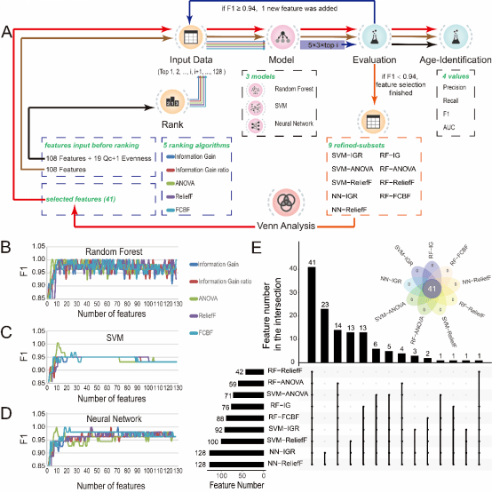 (图3基于机器学习模型的关键特征筛选流程和结果)