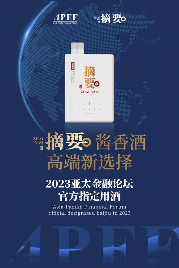 2023年3月17日,2023年亚太金融论坛(APFF)即将在北京举办。届时,贵州摘要酒将作为2023年亚太金融论坛首席合作伙伴暨官方指定用酒精彩亮相。将依托高净值群体,让摘要酒高端品牌价值塑造再上一层楼,并实现消费者的精准培育,并为亚太经济高质量发展和金融创新发展贡献一抹“酱香”力量。