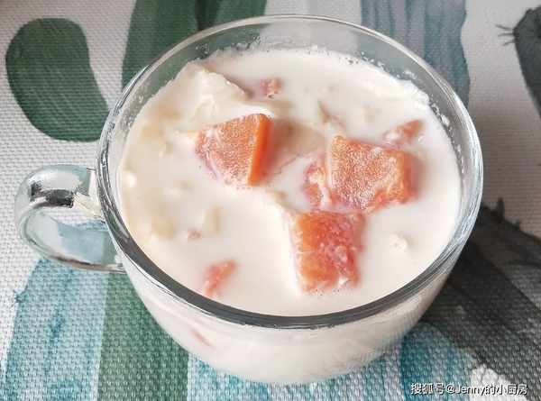 最后倒入纯牛奶搅拌均匀,这道好吃的银耳汤就做好了。