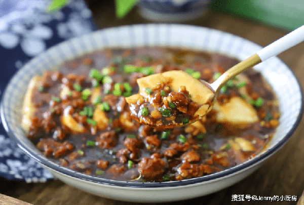 等豆腐蒸好后,将肉末酱倒在上面,再撒些葱花,这道菜就做好了。