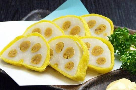 在莲藕根中填入辣味噌后再去煮,这是道居酒屋名物。通常都会沾著美乃滋来吃,有点脆又有点辣,但是非常好吃。大多数杂货店都有把它做成零食版本,在鹤屋百货店的地下街可以找到这道美食。