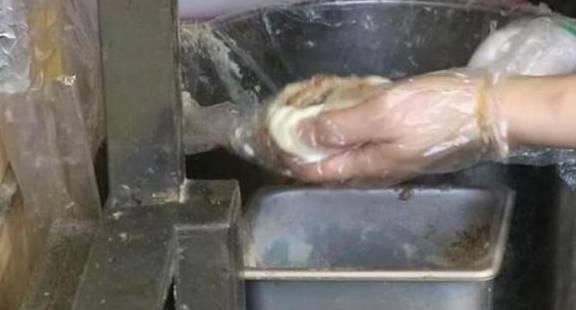 因为和女同事关系还不错的原因,前几天还特地联系她,去了她的小吃铺看了看。只见她先将糯米粉加入小半的清水,揉成定型的糯米团,然后拿出已经制作好的糖馅,糖馅是每天晚上提前制作,材料是由芝麻,白糖,黄豆面,花生碎等做成。女同事先将揉好的糯米团放在案板上,用一只手抓住糯米团,然后另一只手将将一勺糖馅盛起来,放入糯米团中,最后用手捏紧拍扁,然后下入饼铛中,加入菜油开始煎。