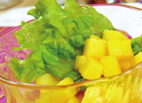 材料:苹果2个(约300克),秋梨50克,生菜叶少许,蜂蜜2小匙,柠檬汁4小匙。制作步骤:1 、生菜叶洗净;苹果、秋梨削去外皮,挖出果核,洗净,切成小块,与菜叶一同放入盘中。