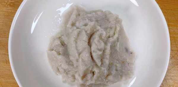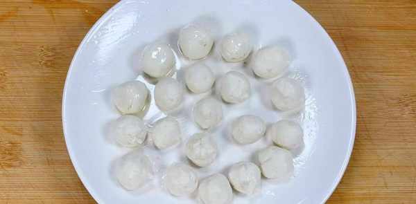 3、准备一个干净干燥的盘子,双手取一块面粉,揉成球状。面团里的淀粉吸水性很强,不用担心粘在一起。把所有的球放在盘子里放在一边。