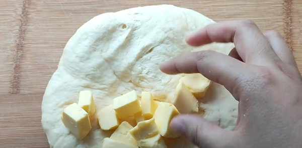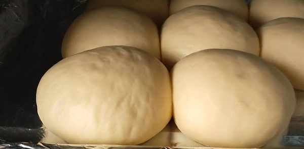 8.卷起来放入碗中,盖上盖子发酵至两倍大。