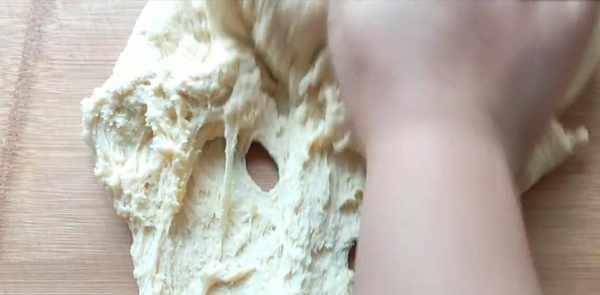 5.黄油刚融化的时候会很粘,不要停下来继续揉,边揉边用工具刮。揉5-6分钟,用布尽可能用力。