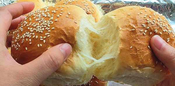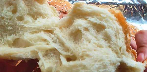 9、发酵好的面团体积较大,内部微酸,呈蜂蜜状。