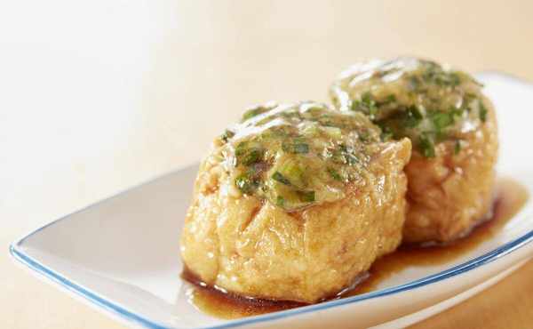 4、将豆瓣酱放在炸好的豆腐上;