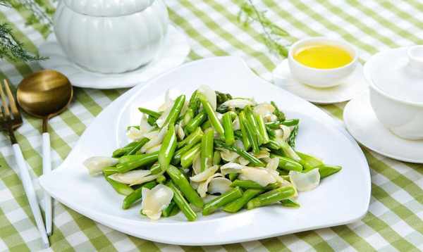 【材料】芦笋、鲜百合、蒜头、蚝油、盐、生粉、水