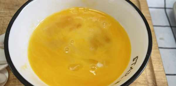 1。在碗中打一些鸡蛋并混合;香菇洗净,切成薄片;