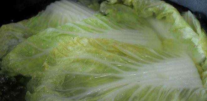 4。锅中放入适量水,水烧开后放入白菜,焯至软透透明;