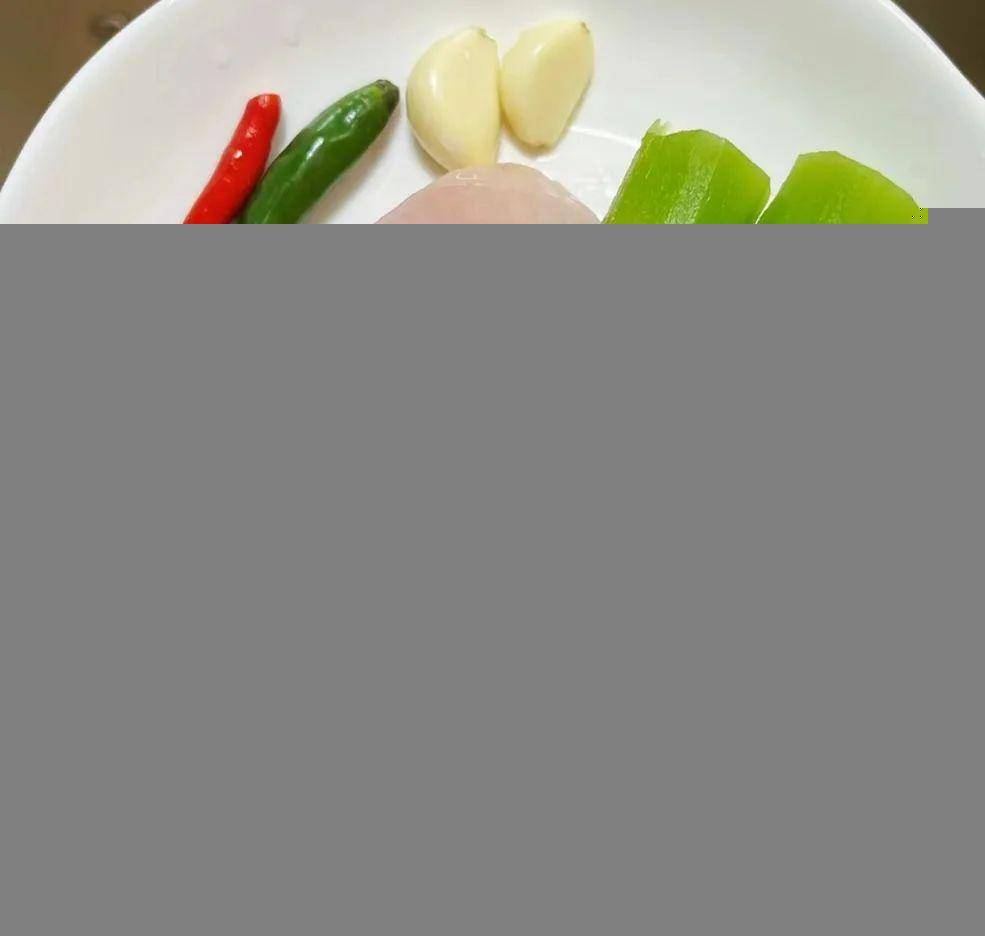 第一步是准备沙拉,去皮切块。鸡胸肉也切成薄片,两片辣小米,两片大蒜。