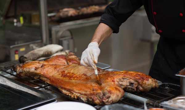 烤全羊的制作过程非常繁琐,必须提前准备好原料和烤制设备。首先,买一只新鲜的整羊,把内脏和毛洗干净。然后将羊肉用特殊的香料腌制一定时间,使其更香。最后,将腌好的羊肉放入烤箱烘烤至熟。