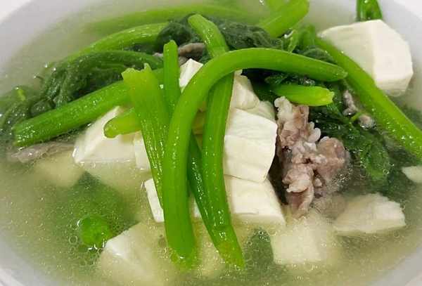 准备材料:南瓜苗、瘦肉、豆腐、蒜末。