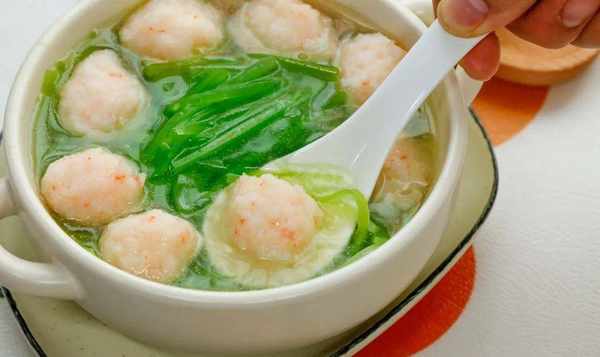 你可以在这个阶段加入碎虾来省去麻烦。像我一样,把虎口虾仁挤出来,做成一个小丸子。或者舀取或挤压袋子,以更方便的为准。