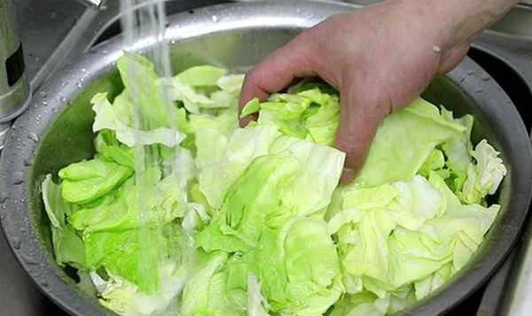 1、白菜取硬的吸管,撕成小块,用清水洗净;将花椒粉碎,切成小块;将一小块五花肉切成均匀的薄片;剁碎一些大蒜和小米椒圈备用。